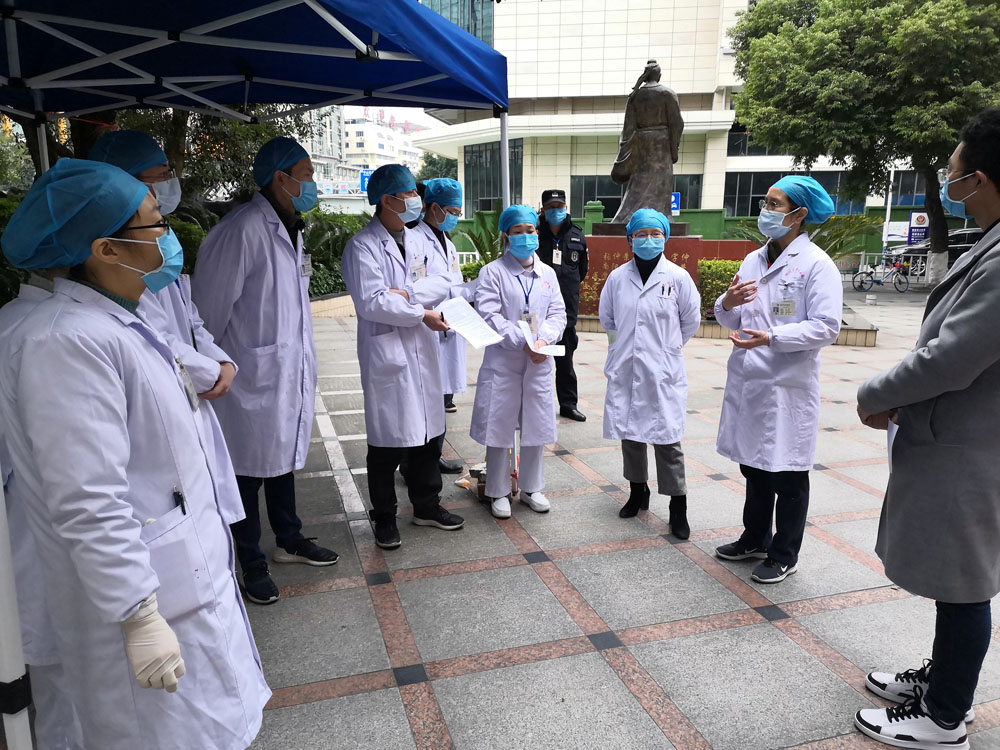 图为王智对医院预检分诊工作进行督导