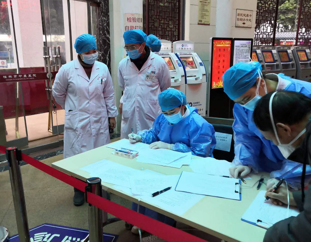 除夕夜,本该是万家灯火,合家团圆的日子,桂林市第一例新冠肺炎患者打破了一切平静。医院的新冠肺炎防控阻击战正式打响。在支部书记兰燕的号召下,院感科全体党员放弃春节假期,紧急回归岗位,就连还在休产假的王乾梅同志也主动请缨,考虑到她和新生宝宝的安全,兰书记安排她在家负责传染病疫情报告,让其他同志能集中全力做好医院的疫情防控工作。